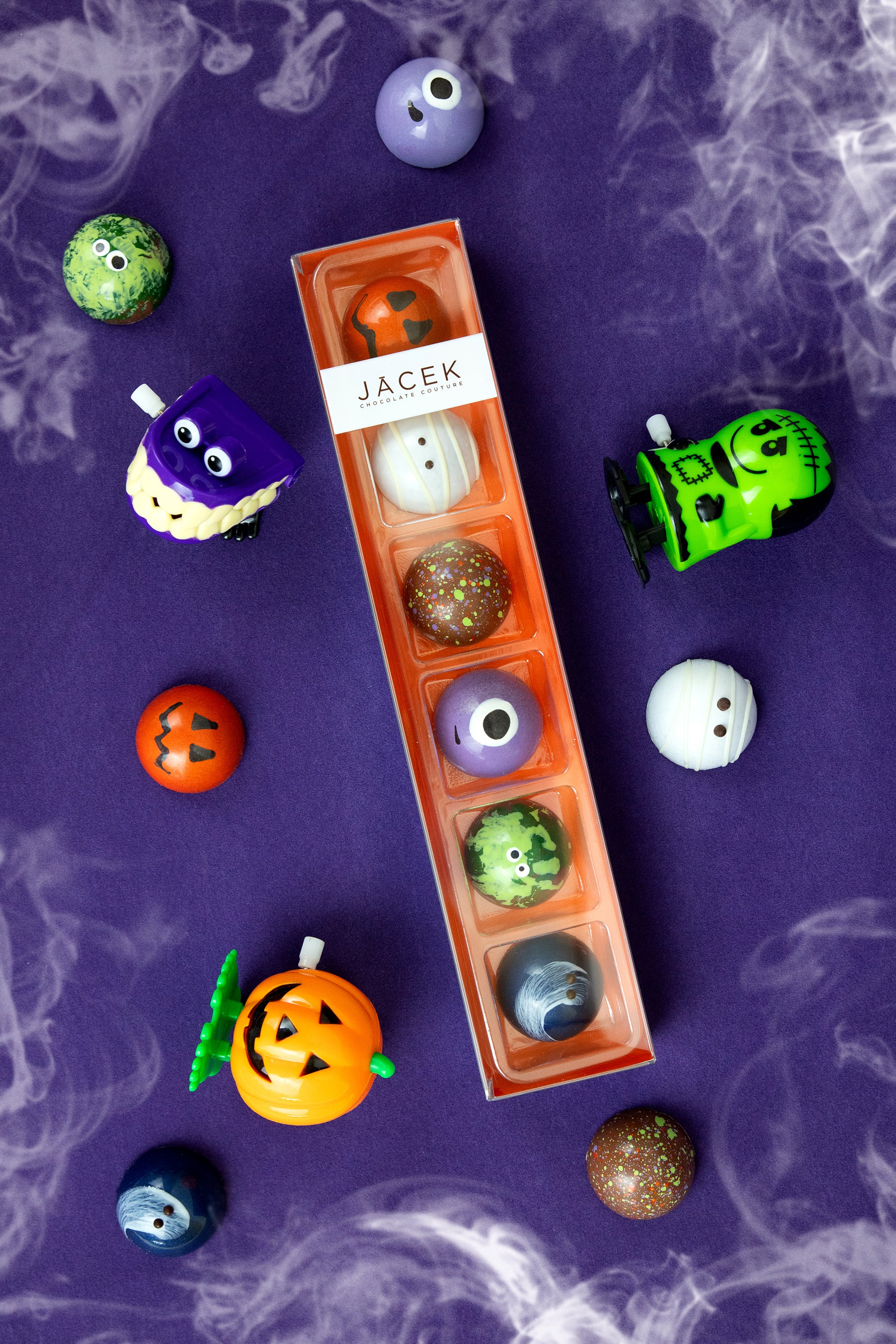 Boo! Treat yourself to our hauntingly delicious caramelized milk chocolate bonbons.